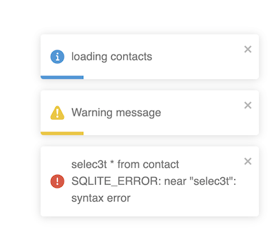 Under the db object, there are three functions used to send different types of messages to the frontend.
